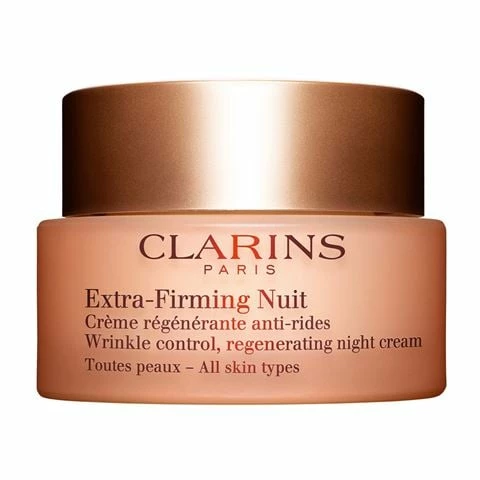 Clarins Extra-Firming Night Cream is a wrinkle control, regenerating night cream that’s suitable for all skin types. It visibly firms the skin and reduces the appearance of wrinkles while you sleep. On waking, the skin appears smoother and more even. This cream also helps combat the effects of pollution.