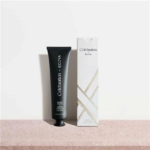 Ecoya has a new offering in the Celebration Collection. A beautiful hand cream, fragranced in White Musk & Warm Vanilla and presented in a chic black and white tube. This hand cream protects, nourishes and moisturises hands, leaving skin feeling soft and smooth while forming a barrier to protect from harmful elements.